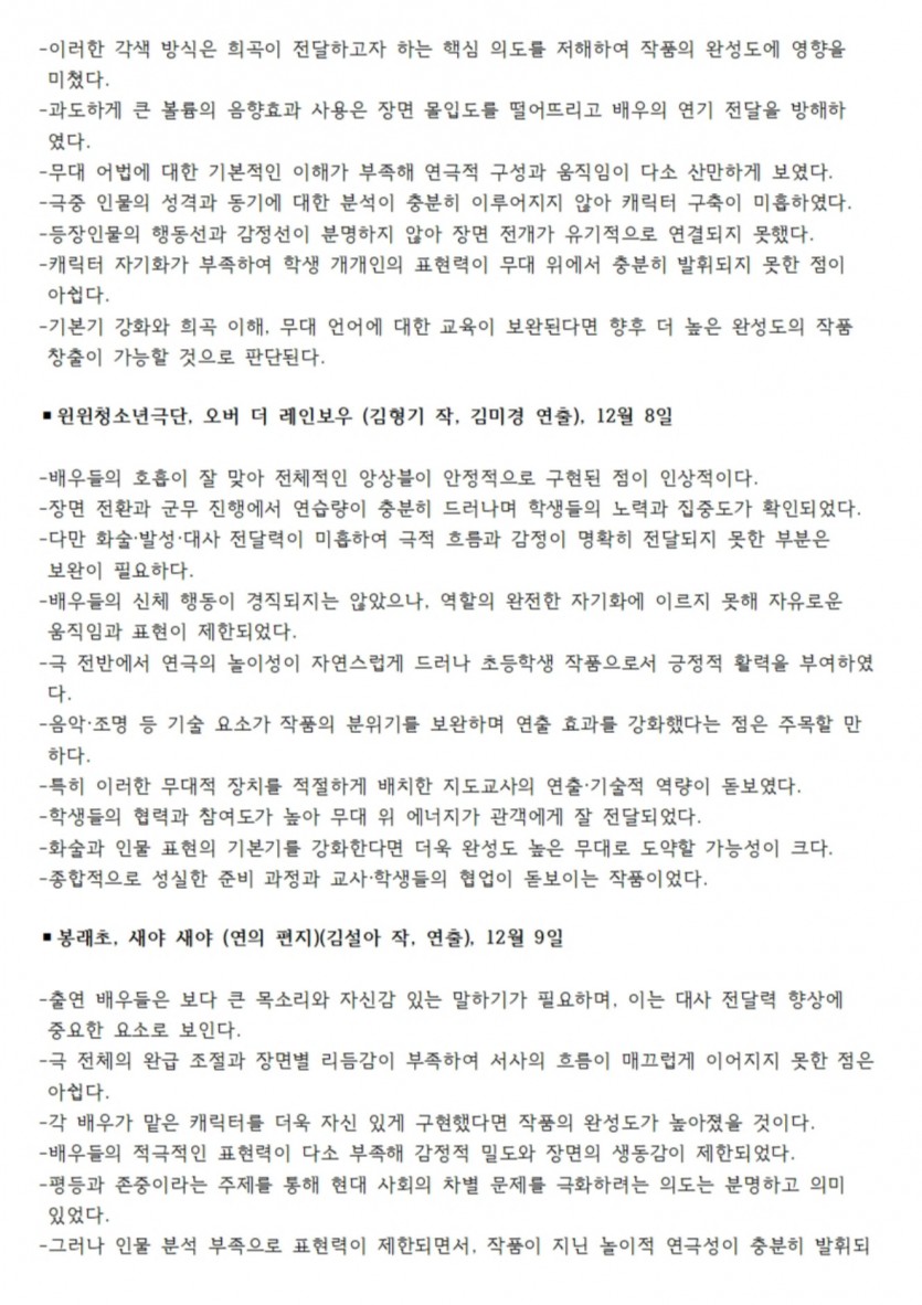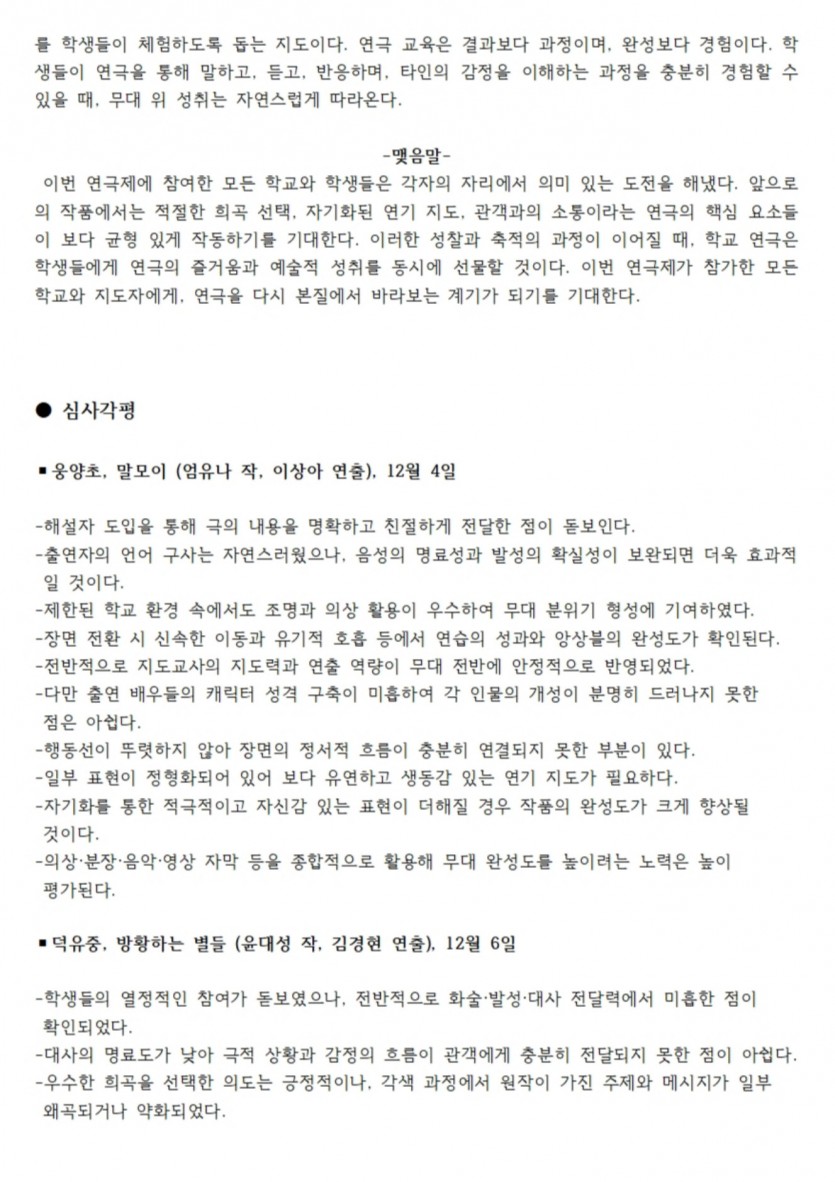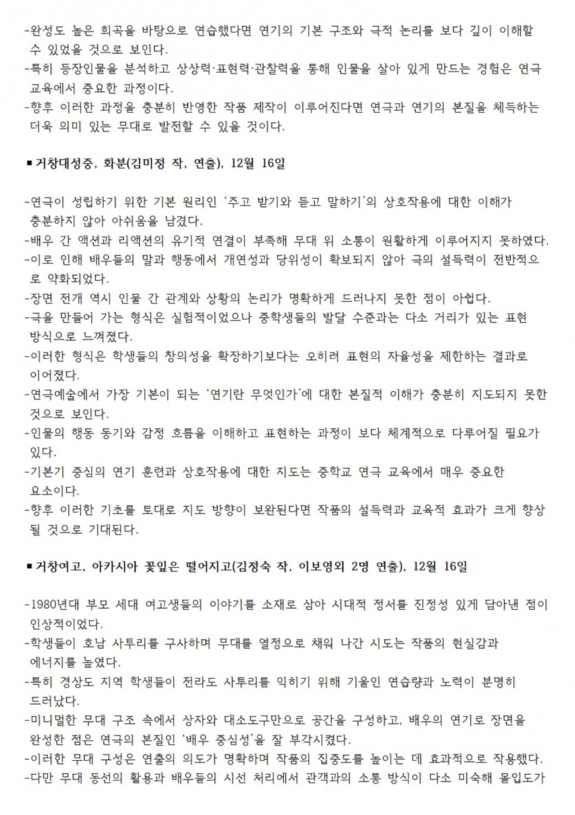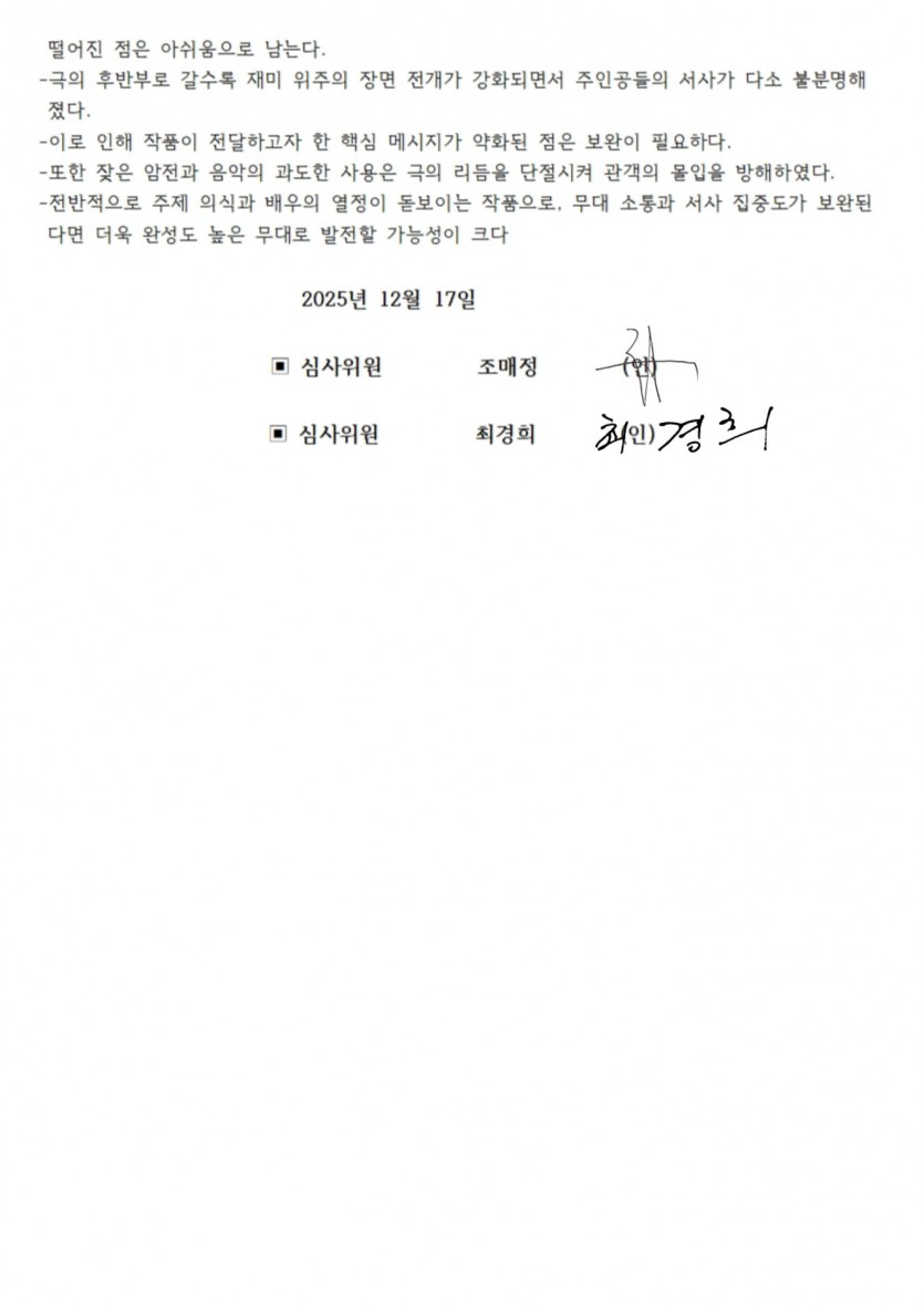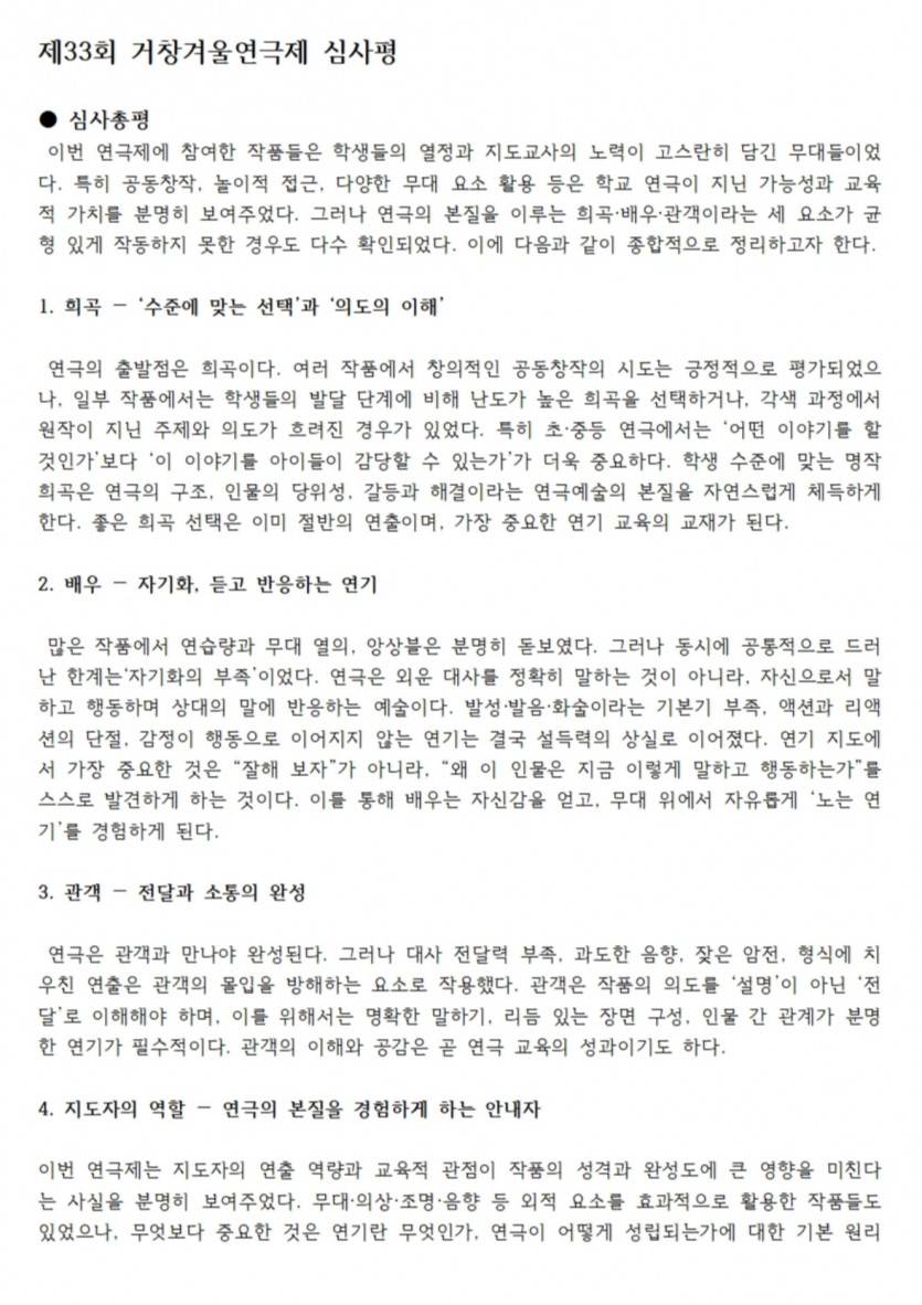 2025년 제33회 거창겨울연극제 심사평입니다. 작성자 정보 최고관리자 작성 작성일 2025.12.17 18:35 컨텐츠 정보 146 조회 목록 본문 . 관련자료 이전 2025년 제33회 거창겨울연극제 심사결과입니다. 작성일 2025.12.17 18:37 다음 2025년 제33회 거창겨울연극제 참가신청서 작성일 2025.08.22 10:07 목록